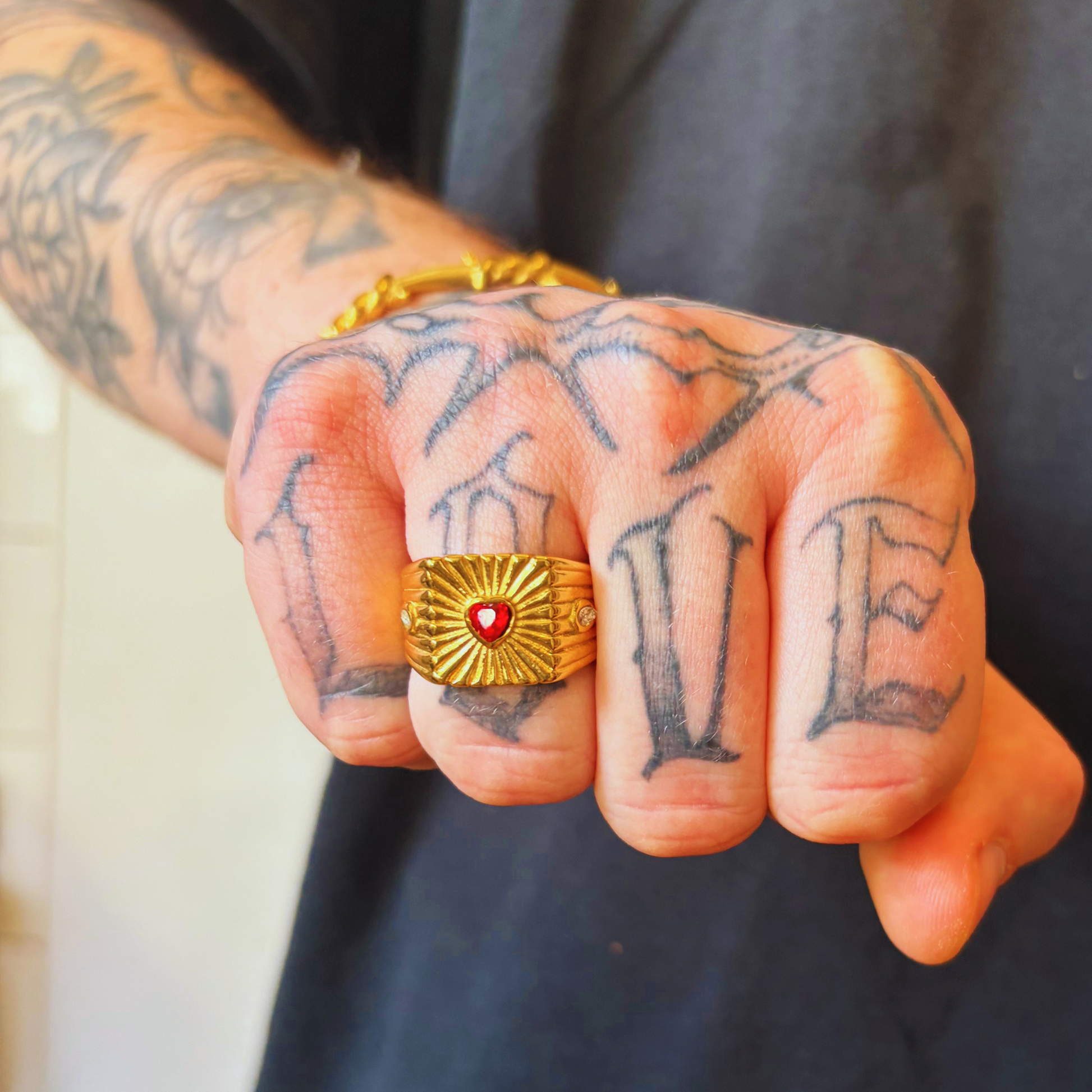 A classic shape with a bold center. The Dark Flora Ring features a heart-shaped stone set in a sleek, structured band — balancing softness with a modern edge.